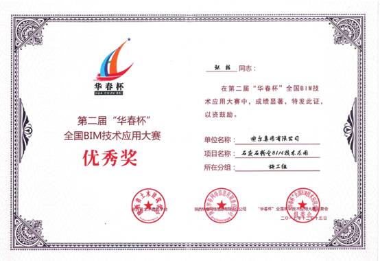 公司榮獲第二屆“華春杯”全國BIM技術(shù)應(yīng)用大賽優(yōu)秀獎